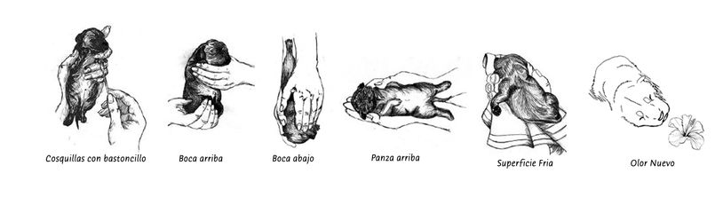Las estimulaciones las hago sobre la misma hora y todos los días. Durante la estimulación prima que el cachorro esté tranquilo, por tanto las hago con mucha calma, cerca de la paridera o incluso en la misma paridera para que tanto madre como el cachorro estén cómodos.