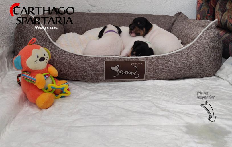 Un cachorro que aprende a hacer pis en cemento es un quebradero para el criador pues nunca consigue tener el lugar donde vive la camada limpio. También lo es para la familia pues para el cachorro toda la casa es un WC. Los cachorros Carthago Spartaria saben donde está el WC y lo usan.